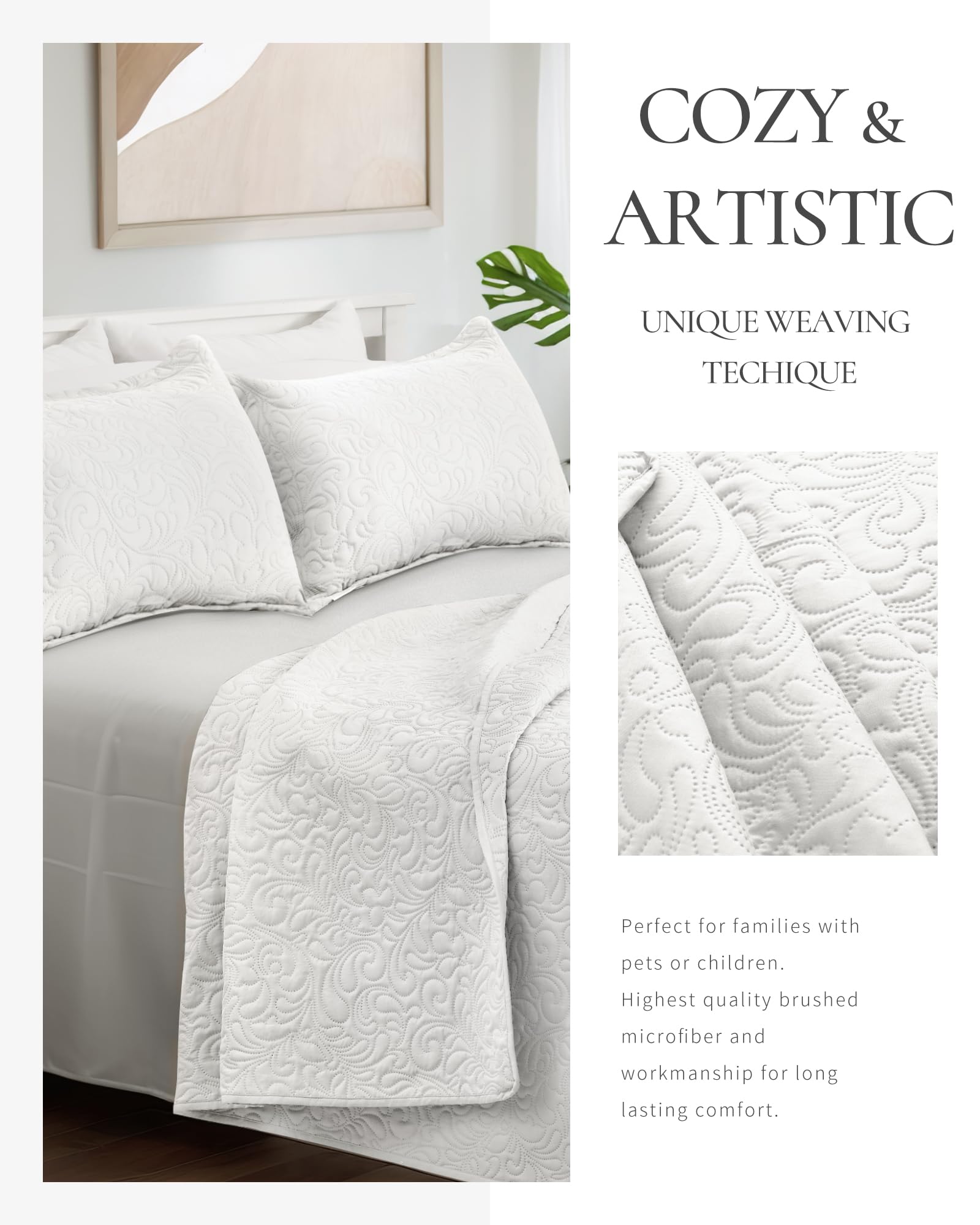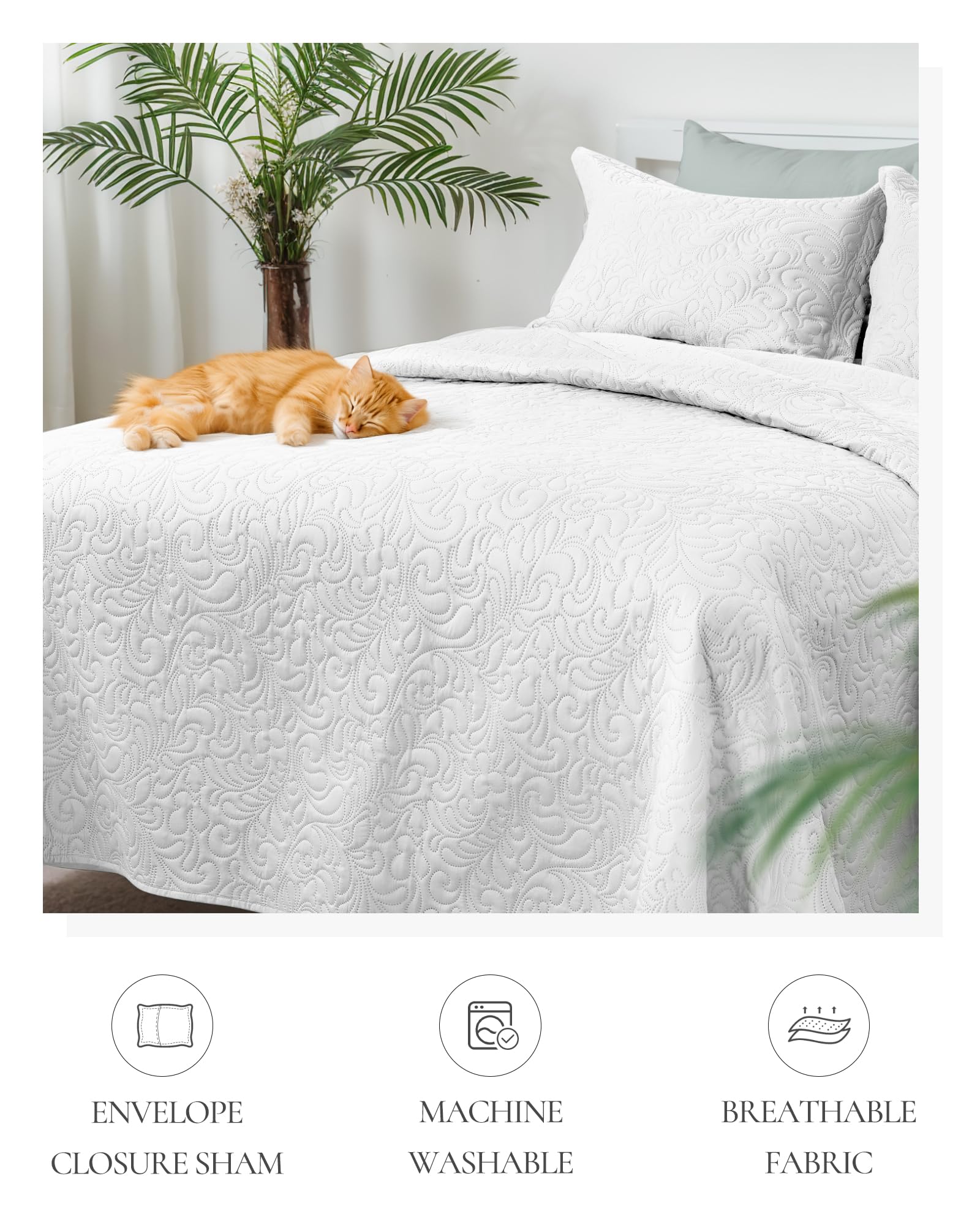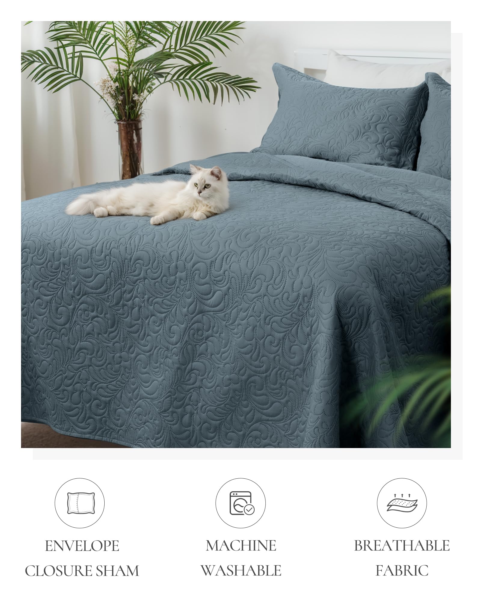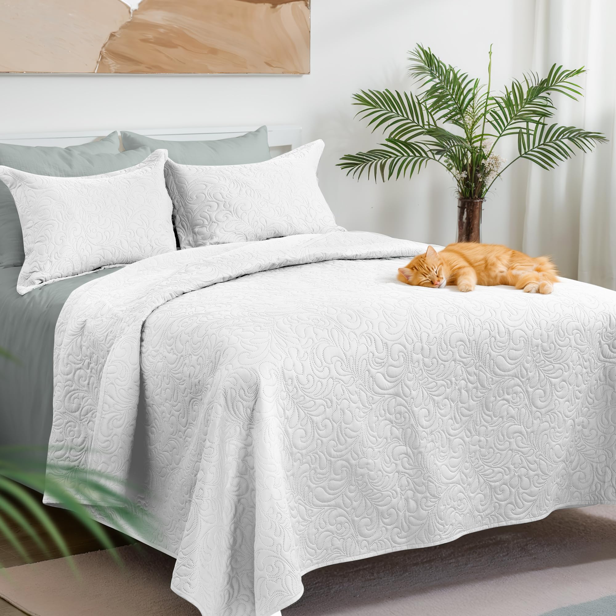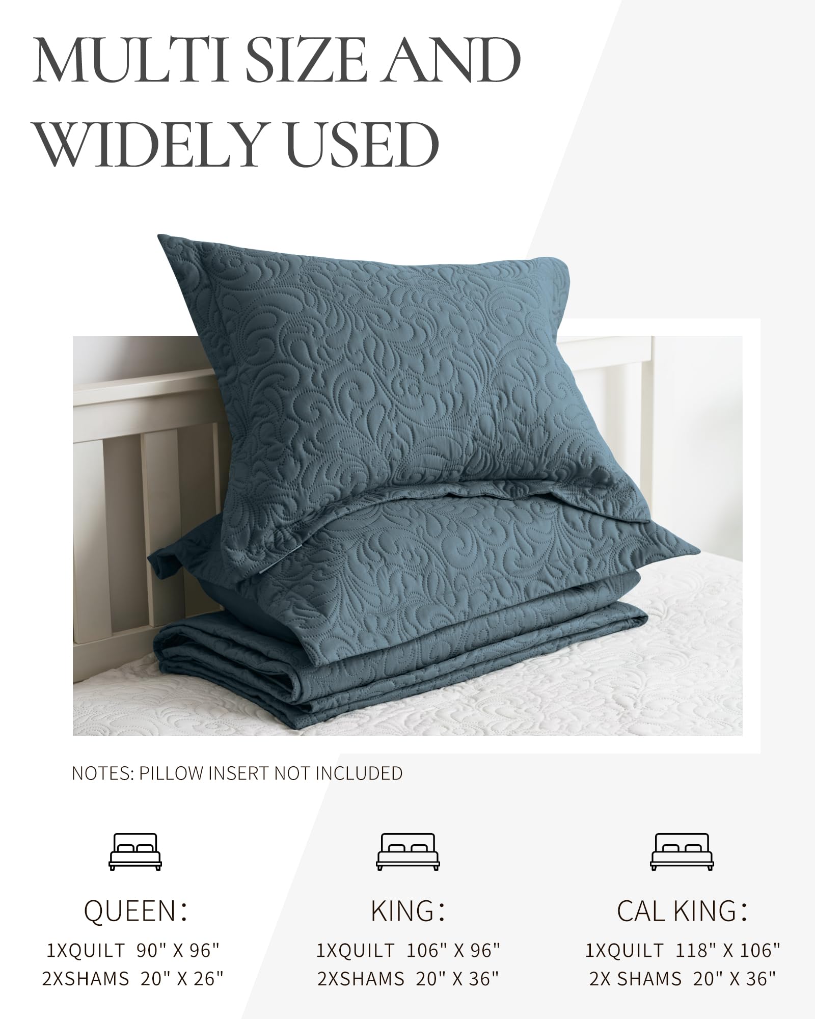 - 【PERFECT FOR HOME】 Cal king size includes a quilt (118"x106"), 2 pillow shams (20"x36"). This bedspread set is designed for all-season which can work as an alternative to a comforter during warmer months or as a layering piece in winter. Definitely, a perfect bedding gift for your families, friends and kids.