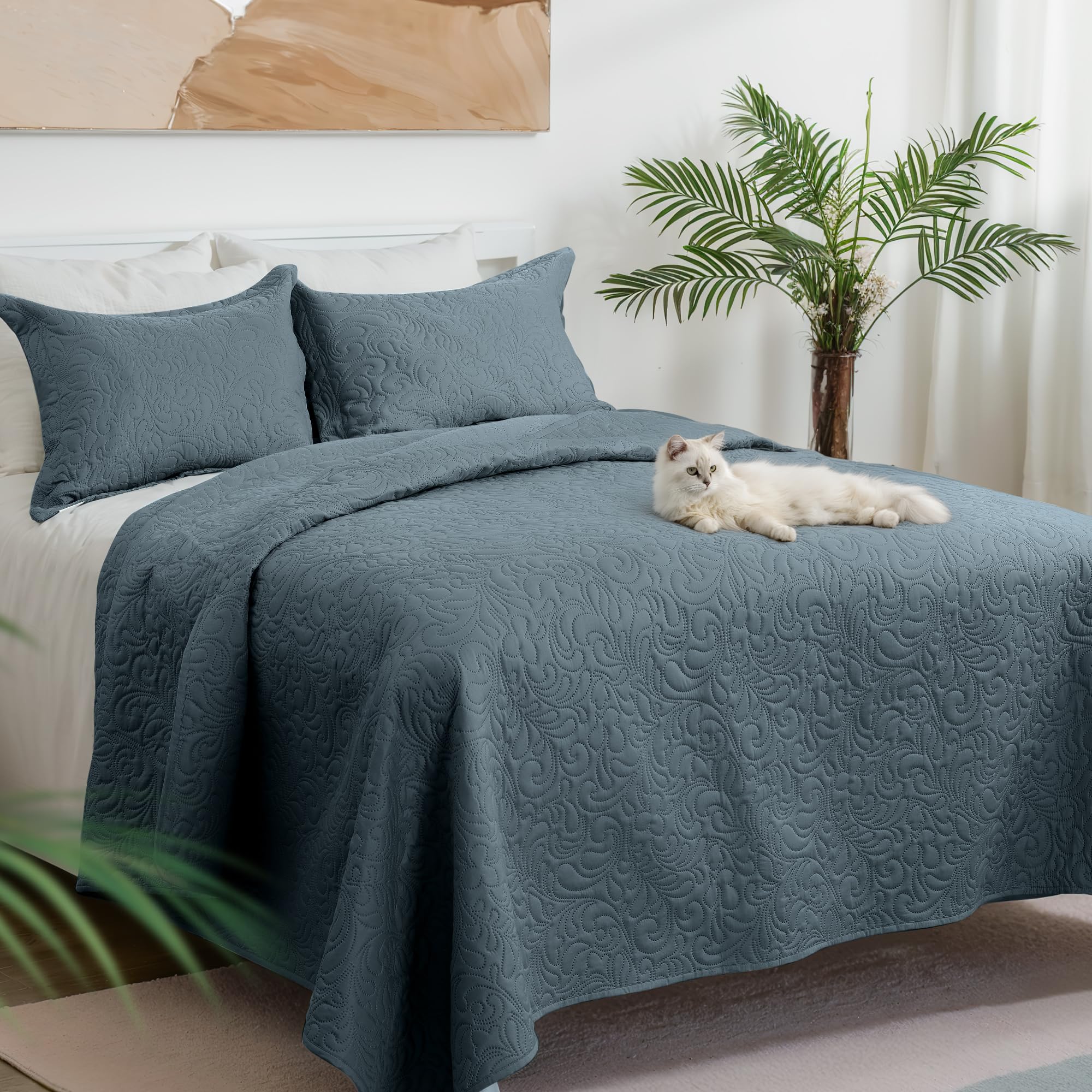 - 【ULTRASONIC QUILTING TECHNOLOGY】: The luxurious cal king quilt feature advanced ultrasonic technology for long-lasting durability and extra chic in your bedroom. The Cal King size quilt sets with a variety of solid colors, extended elegant pattern Cal King bedspread is a perfect choice for home decor.