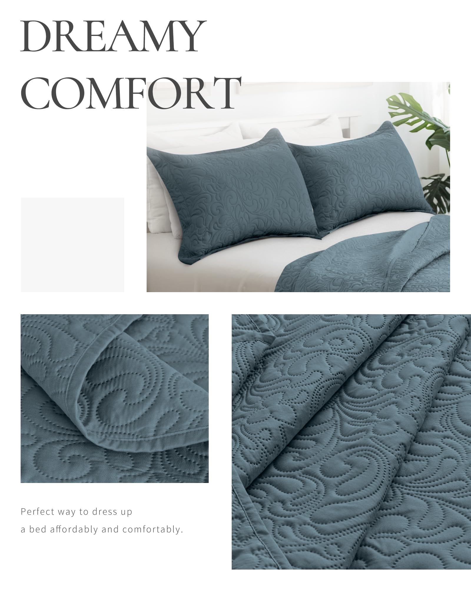 - 【Lightweight and Soft Comfort】DENNYLIFE quilt set is crafted from premium microfiber material, ensuring a luxuriously soft and lightweight experience. The cal king quilt breathable fabric provides warmth during winter and coolness in summer, making it ideal for year-round use.