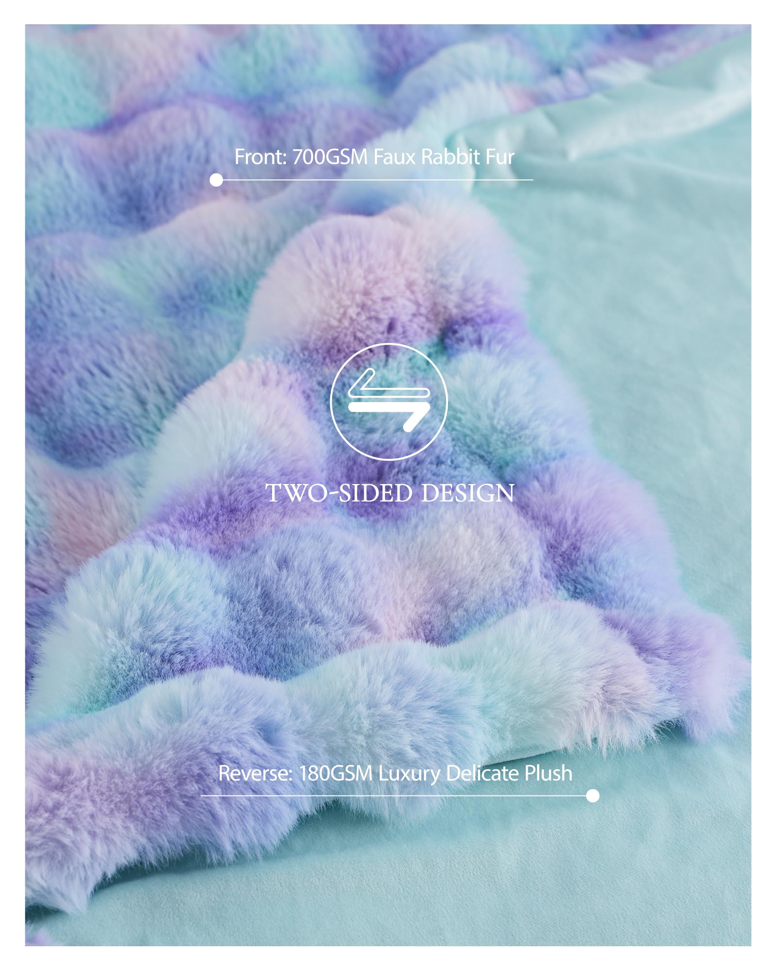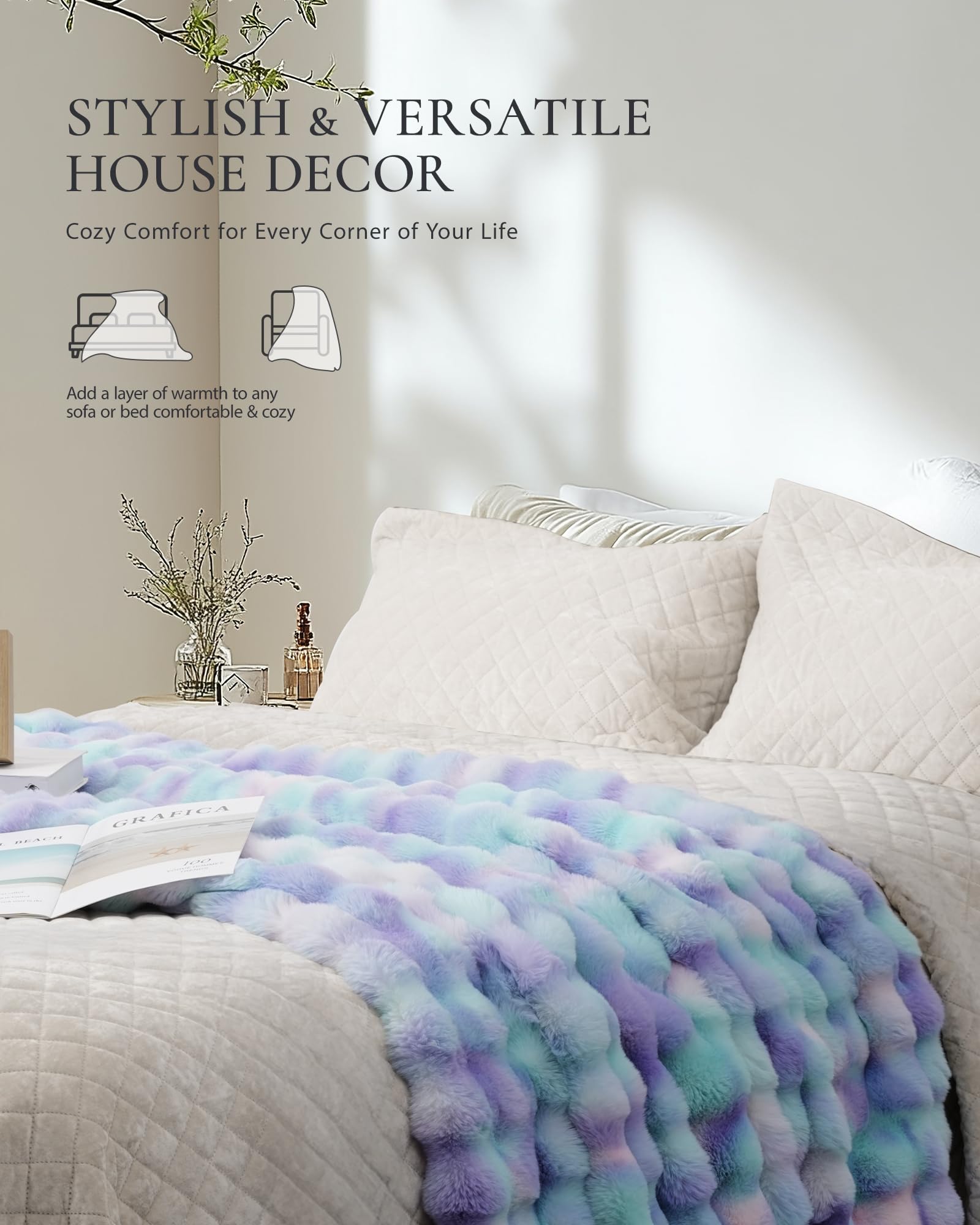 - Cloud-Like Comfort in Every Season: Our throw blanket designed as a 700GSM bubble-textured throw blanket, it offers the cozy weight of a winter blanket with the breathability of a year-round layer. Reversible design features faux fur on one side and smooth fleece on the other.
