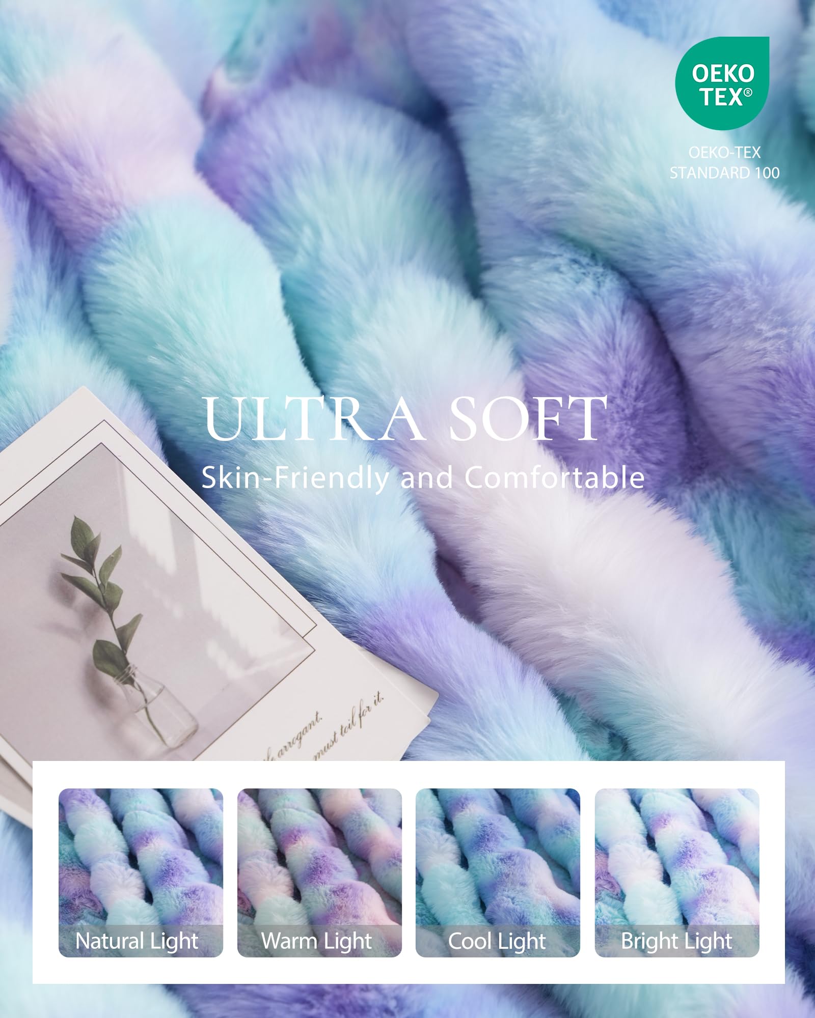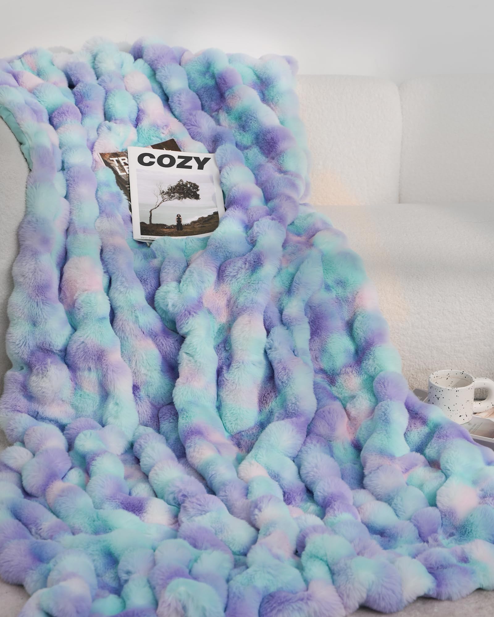 Aurora Faux Fur Throw Blanket, Fuzzy Soft Plush Thick Bubble Blanket, Dreamy Soft Plush Lola Blanket for Couch, Bed, or Gifting, 50 x 60 Inches Tie-Dye Purple, Oeko-TEX Certified