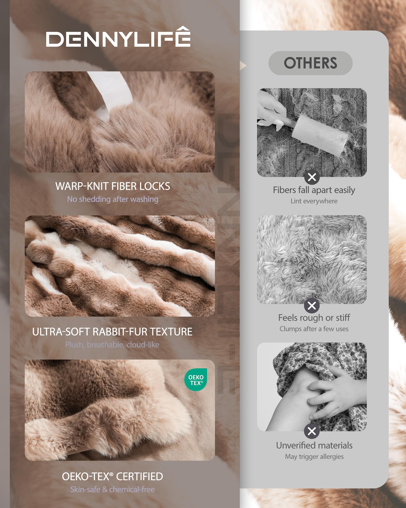 - 【Dual-Sided Faux Fur Comfort – 700GSM of Cozy Softness】Indulge in guilt-free luxury with this bubble faux fur throw blanket, crafted from ultra-soft 700GSM material that mimics the feel of real rabbit fur—without harming any animals. Designed with an eco-conscious mindset, this cruelty-free throw pairs its plush faux rabbit fur side with a warm, breathable microfleece backing, offering cozy comfort all year round. A perfect blend of softness, style, and sustainability for every modern home.