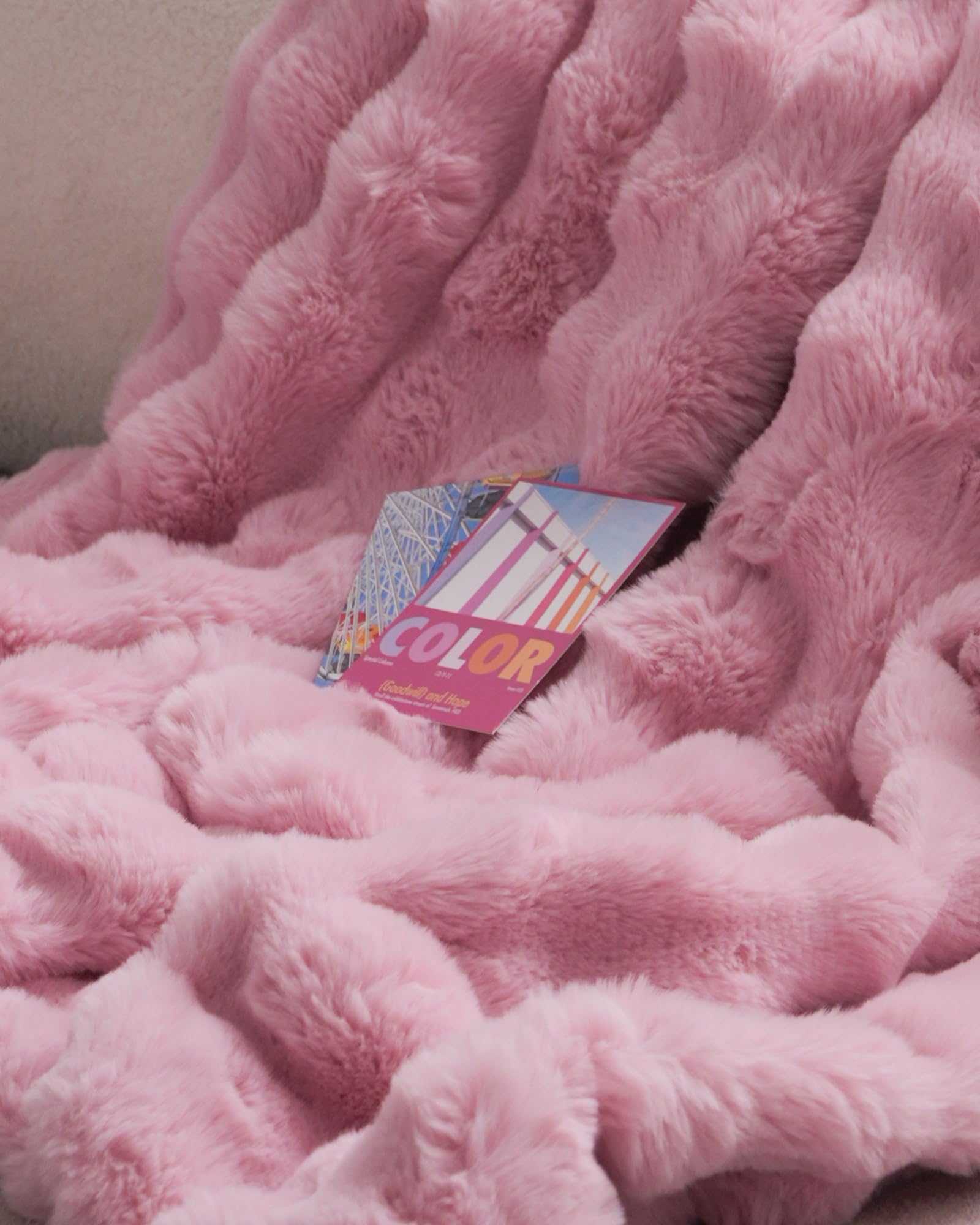 Faux Fur Throw Blanket – Ultra Soft Fuzzy Blanket for Couch or Bed, Bubble Texture, Cozy & Machine Washable, 60 x 80 Inches Decorative Plush Blanket for Living Room or Bedroom